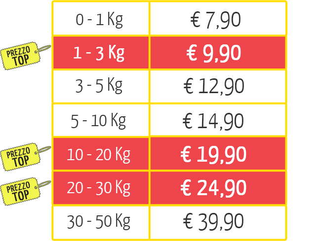 Il costo del trasporto viene calcolato in relazione al volume e/o peso degli articoli ordinati dal Cliente.